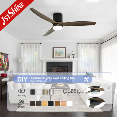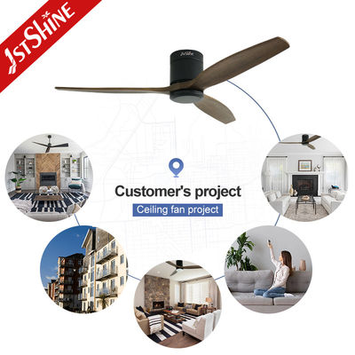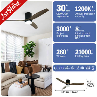 3 Natuurlijke Houten Bladen Laagprofiel Opbouw 52 Inch Plafondventilator Met Led Licht