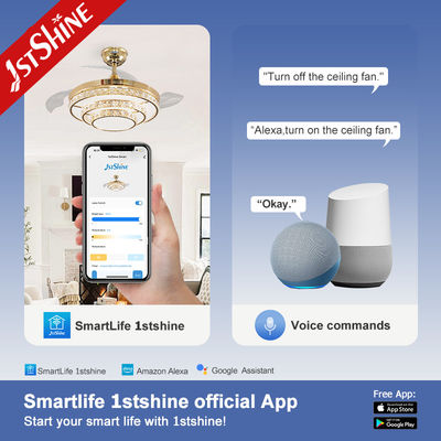 Het is een combinatie van een opneembare ventilator en een kristal kroonluchter.moderne kroonluchterMet deze high-end afstandsbediening kun je het licht en de ventilator snelheid apart bedienen, 3 ventilator snelheden.