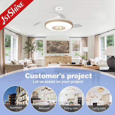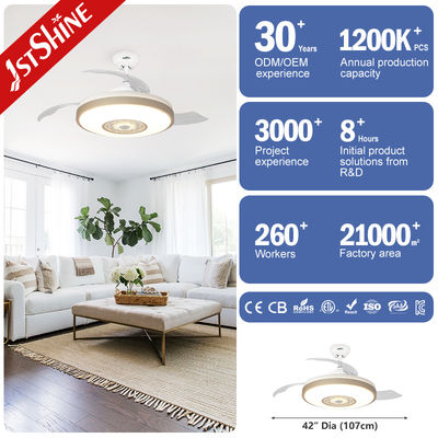De 42-inch onzichtbare plafondventilator met licht voor de woonkamer heeft een nachtlampfunctie en tegelijkertijd kan de kleur van het licht veranderen met RGB-meerkleurig via app-bediening. U kunt ook uw telefoon verbinden om muziek af te spelen.