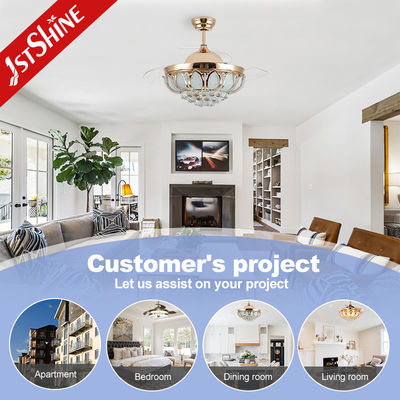42 inch kristal terugtrekbare plafondventilator licht metaal koper ABS lemmet