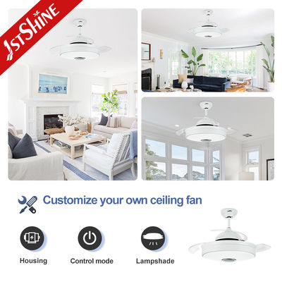 De slimme opneembare plafondventilator is uitgerust met HIFI. Een dimmable LED-lamp volgt de muziek om uw kamer op te lichten.Ook de speciale lampenscherm aan de onderkant verzacht de lichtflits en garandeert een zachtere verlichting.Laat je ruimte met je mee dansen.