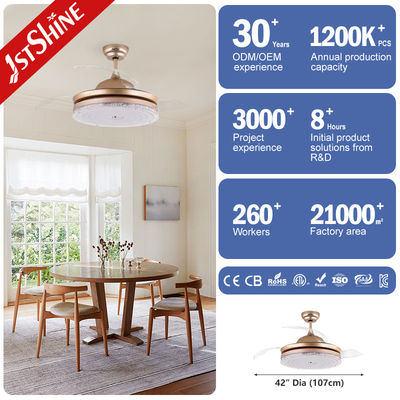 3 Helderbladen Gouden Decoratieve Opvouwbare Led Plafondventilator Met Licht