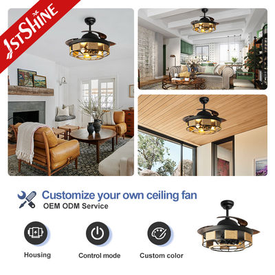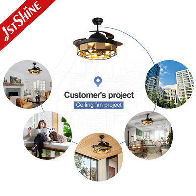42 inch Zwarte Binnen Retractabele Plafondventilator Met Licht En Afstandsbediening