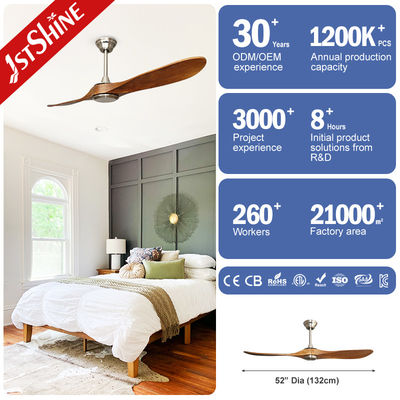 5 snelheden lage geluidsdruk DC motor plafondventilator met 2 massief houten lemmen