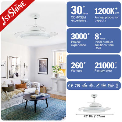Intrekbare Plafondventilator Met Verlichting 42 Inch Moderne Plafondventilator Voor Slaapkamer In 3 Kleuren Veranderlijk