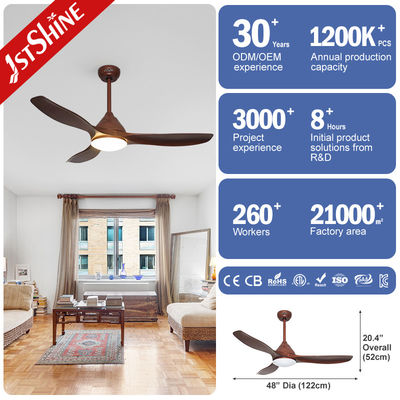 48 inch Plastic Led Plafondventilator Hout Graan Kleur Blade DC Motor