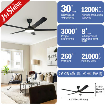 62 inch zwarte plastic bladen DC motor 3 kleur LED plafondventilator