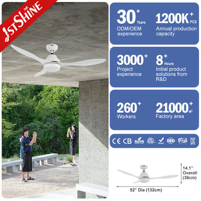 Een ventilator voor alle seizoenen en stijlen, deze stijlvolle plafondventilator, compleet met verlichting en afstandsbediening, wordt geleverd in een eenvoudige maar elegante witte afwerking die goed past bij stijlen variërend van modern industrieel tot minimalistisch. De drieledige gestroomlijnde ABS-bladen zorgen voor een omkeerbare rotatie met een diameter van 52 inch om in de zomer af te koelen en de warmte in uw huis in de winter te helpen verdelen, waardoor u het hele jaar door behaaglijk en gezellig blijft.