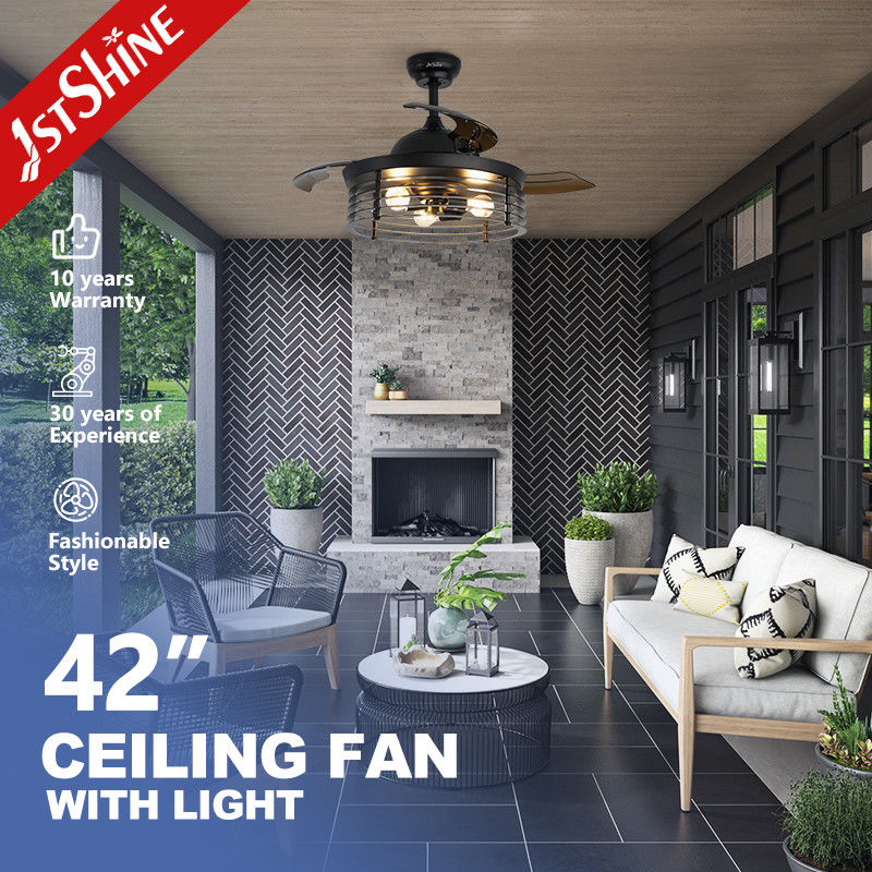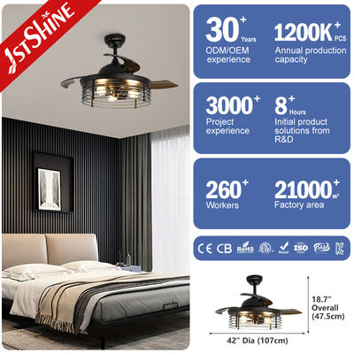 Plafondventilator met 42'' bladen die automatisch intrekbaar zijn bij het aan- en uitzetten, heldere en lichte acryl bladen zorgen voor krachtige wind. Het blad is gemaakt van hoogwaardig PC-materiaal, waardoor het duurzamer is. Koperen Motor: Voorzien van een stille motor, stabiele en sterke stroomvoorziening, behoudt de stille leefomgeving, zorgt voor een comfortabele woon- en slaapervaring