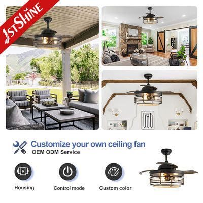 Plafondventilator met licht Industriële plafondventilator Intrekbare bladen Vintage kooi kroonluchter ventilator
