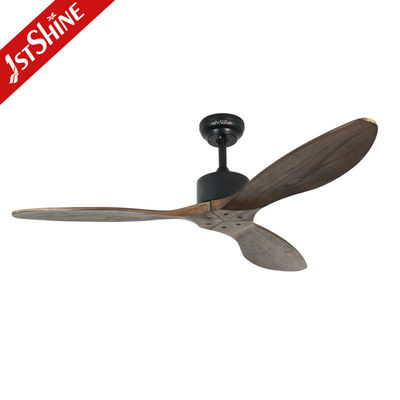 De houten plafondventilator bestaat uit drie massieve walnootbladen voor buitengebruik, met gesmeerde lagers om slijtage te verminderen;