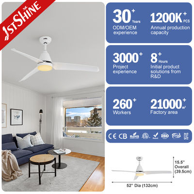 Deze 52" witte plafondventilator is gemaakt van ijzer met witte afwerking.