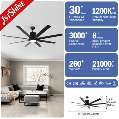 Zwart laag profiel 64 inch Plastic plafond ventilator 8 bladden Energiebesparing
