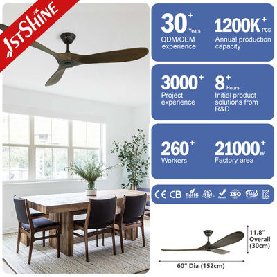 Elk blad van deze plafondventilator is zorgvuldig met de hand vervaardigd uit hoogwaardig massief hout, wat duurzaamheid en een tijdloze esthetiek garandeert. De rijke nerfpatronen en warme tinten van het hout voegen een vleugje verfijning toe aan elke ruimte, waardoor een gezellige en uitnodigende sfeer ontstaat.