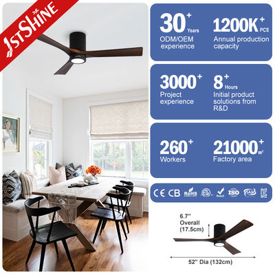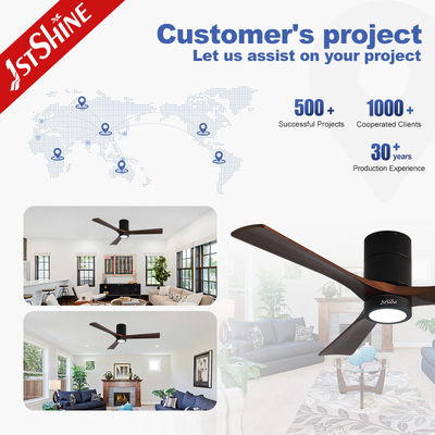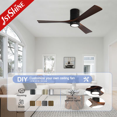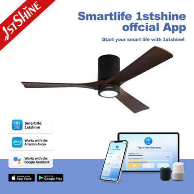 Decoratieve 3 natuurlijke houten bladen Flush Mount Led Tuya Smart Plafondventilator met Licht