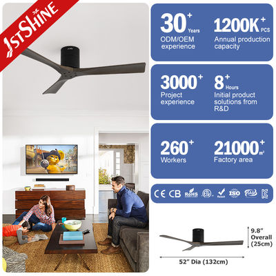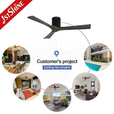 3-Blads Houten Plafondventilator met DC Motor – Zwart Afgewerkt Massief Houten Design