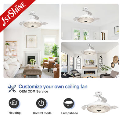 De terugtrekbare acrylbladen strekken zich automatisch uit wanneer de ventilator aan is en trekken zich terug wanneer deze uit is, waardoor ze een schoon kroonluchterachtig uiterlijk behouden.De kristalvormige acryllampbescherming vergroot de lichtdiffusie en geeft een luxe touch aan elk interieur.